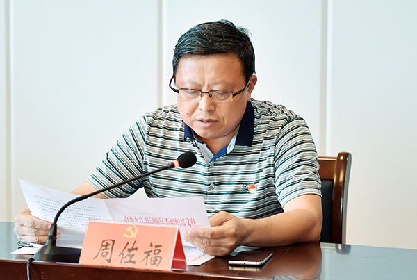 周佐福宣读《关于转发<开展“学习抗洪英雄 争做优秀党员”主题活动的通知>的通知》