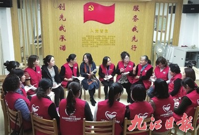 近日,来自各行各业的九江市浔阳义工联合会的姐妹们,聚集一堂,举行党的十九大精神宣讲座谈会。九江市、浔阳区妇联领导与女义工们相互分享交流了自己学习十九大精神的体会,并表示要以十九大精神为动力,不忘初心,发扬光大义工精神,以新时代、新公益为奋斗目标,继续为社会发展奉献自己的光和热。