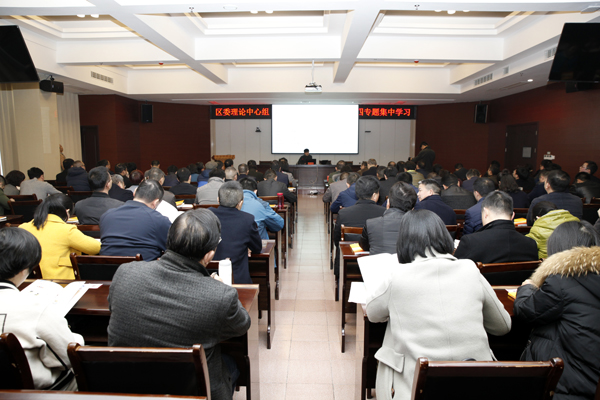 徐昭国、王风雷、范初芳、孙金星、徐礼文、周庆吾、郑德俊、周佐福、张小军、宋卫国等区四套班子在家的领导及法检两长参加集中学习研讨。