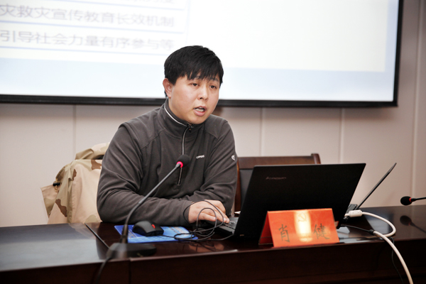 九江地震台副台长、高级工程师肖健作了《不忘初心、牢记使命,推进新时代防震减灾事业现代化建设》的专题辅导报告