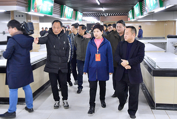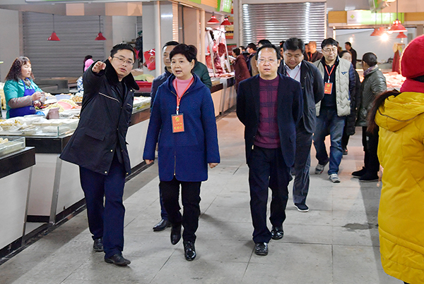 1月10号,市人大常委会组织市人大代表来到浔阳区对“十个一百”惠民利民工程项目完成情况进行集中视察,市人大常委会副主任戴晓慧、傅朗林率队视察,市人民政府副市长孙金淼,区领导徐昭国、梅美华、曹文文、任佳佳、周衍军等陪同视察。<br>视察组一行实地查看了曹家山、九化、沙子墩农贸市场,牌楼洼社区、龙山社区、新东方社区和九化、灌婴路、西门口停车场等地,详细了解了农贸市场建设改造情况,社区综合服务站建设整体情况,停车场建设推进情况,对浔阳区“十个一百”惠民利民工程项目完成情况给予了充分肯定,并就下步工作开展提出了意见和要求。