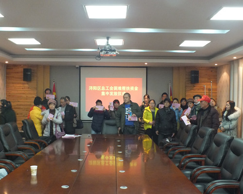 1月16日上午,湓浦街道在街道二楼举行工会困难职工帮扶卡发放仪式。湓浦街道党工委副书记、街道干部、困难职工20多人参加。在发放仪式上,街道工会负责人详细介绍了这次困难帮扶审核批复情况、帮扶规则调整情况、帮扶金额发放标准、帮扶卡使用方法以及困难时如何申请工会帮扶。