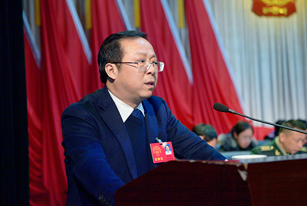 区委副书记、区长徐昭国代表区人民政府向大会作政府工作报告